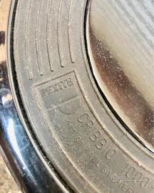 Disegnato nel 1981, senza saldature creato da un unico foglio d'acciaio traforato radialmente, molto leggero