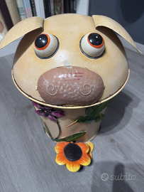 Maialino in metallo con bidone per la carta. Fatto a mano. Bellissimo. Non lega più col mio arredamento.