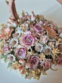 Straordinario cestino di fiori in porcellana Capodimonte realizzato dai Fratelli Majello. Un capolavoro dell'artigianato napoletano. Solo consegna a mano. Diametro ca. cm 16, altezza ca. cm 13.