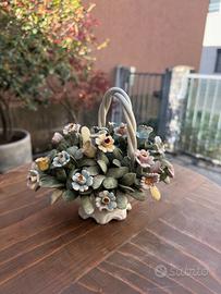 Cestino fiori Capodimonte originale in porcellana