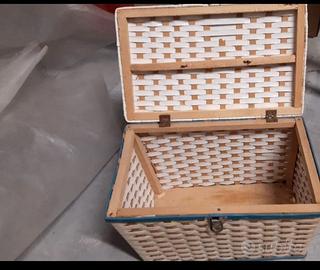 Cestino fine anni 60 per bambino, mai utilizzato in vimini e plastica.
