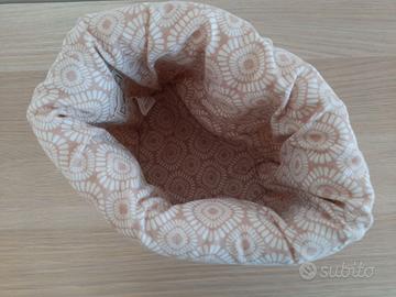 Cestino porta pane Angelica Home & Country rosa e beige in cotone imbottito con orlo a fantasia. Altezza 19 cm, diametro 23 cm. Il porta pane grazie alle delicate tonalità del rosa porta in casa l’allegria e la spensieratezza della primavera. Design italiano. Lavabile a 40°.