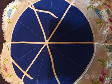 CESTINO PER IL PANE IN PANNO BLU E COTONE BIANCO RICAMATO A MANO