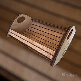 Cestino porta pane in legno di pioppo prodotto artigianale nuovo con laterali personalizzabili Dimensioni 21x18x10h