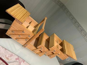 VERO AFFARE Vendo cestino porta-lavoro, LEGNO NATURALE di Pino, spesso usato per il cucito, che mi è stato regalato e non ho MAI toccato! NUOVO Misure: 40 per 20 per 22 cm (esclusa maniglia!)