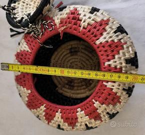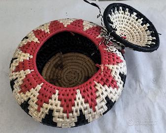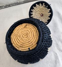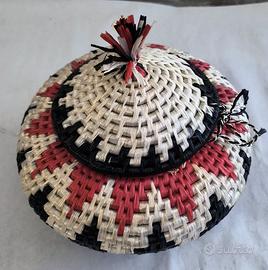 CESTO ANTICO CON COPERCHIO CM 20 CESTO SARDO IN GIUNCO FATTO A MANO DECORATO