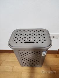 Cesto in plastica grigio modello Arianna Tontarelli. Dimensioni 45x37x27,5 cm