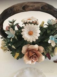 Cesto di fiori Capodimonte con timbro originale +3roselline + 1 centrino