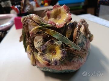 cesto fiorito in ceramica dipinta
