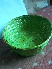 CESTO, Cestini (4) e alcuni arredi e soprammobili 1) 5 CESTINI intrecciati : a) GRANDE tondo in vimini, robusto con ampio manico ad arco, contenitore anche per pacchi regalo, alto 41, Ø 41-42 e base 35, sponde cesto alte 15. Usato, ma molto buono -EUR 36 b) rettangolare giallo paglia grezzo 23x18x8 -Eur 8 c) rotondo a scodella verde pisello chiaro Ø 25 e alla base 20 h.10 -Eur 8 d) rotondo a scodella giallo paglia e decorazioni/rinforzi marrone Ø 21 e 16 alla base rialzata. h 11 -Eur 10 e) forma cuore (accennata), verniciato a smalto bianco rinforzante/fissante, Ø 21 e 16 alla base, h. 6,5 Robusto -Eur 14 2) Bombarda "Cannone" metallico su affusto/supporto in legno, basculante Usabile anche in verticale fissato al muro come vaso (mettendo fiori nei cannoni) Riproduzione, con stemma in rilievo con chimera-grifone rampante. 25x11x16 cannone: Ø 7,5 lungo 22 -Eur 21 3) Statuetta-contenitore in terracotta cava non dipinta uomo corpulento con cappello frigio La testa-spalle amovibile dà accesso al vano interno. Testa reincollata dopo rottura, ma migliorabile con stucco e ritocco di pittura h.tot. cm. 26 x 13x8,5 Base Ø 8,5 -Eur 28 4) Tavolinetto-alzatina vintage x caffettiera Nero Usato vissuto cm. 14x12x3,5 -Eur 8 5) Tappo bottiglia in peltro a 3 corolle di margherita Stile liberty Tappo vero e proprio in nylon trasparente flessibile -Eur 18 6) Pentola vintage rustica pesante in lega di alluminio smaltato con manico basculante (tipo secchio) in massiccio ferro battuto Ø bocca mm.153, base 183, alla stretta in "vita" 135 con 3 nervature Capienza lt. 2,5 ca all'orlo, lt.1,7 alla "vita" mezzana. Idea arredo anche come porta vaso -Eur 34 --- --- Importi legg.tratt. Esamino proposte per il gruppo intero > altre foto disponibili < Sconti x acquisti multpli e/o su altri miei annunci x es: SCONTO 3 x 2 Visione e
