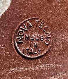 Cesto in vera pelle anni 70. Produzione Nova Tecno, marchiato alla base. Pezzo vintage con lievi segni del tempo.
