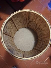 Cesto/portabiancheria in vimini intrecciato, struttura rigida con fondo solido. Stile naturale/vintage, capiente. Usato ma in buone condizioni generali. Ideale per bagno, camera o lavanderia.