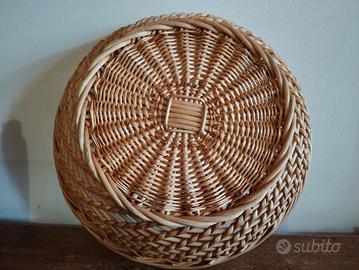 Bellissimo cesto rotondo in vimini, utile come portaoggetti e decorativo da appendere.
