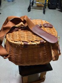 Come nuovo, mai usato, dotato di chiusura con fibia, maniglia per il trasporto a mano e di tracolla per trasporto sulla spalla.