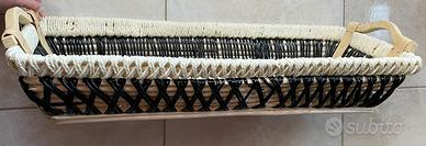 Cestino regalo per feste e occasioni (natale) in vimini e legno, di colore bianco e nero