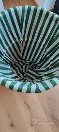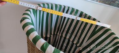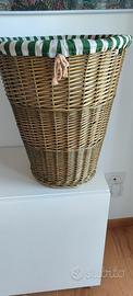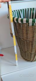 Bellissimo cesto multiuso, molto capiente, con fodera lavabile in lavatrice. La fodera è divisa al centro del cesto al suo interno con cordoncino per separare eventualmente il bucato (per es. Bianco dal colorato). Mai usato. Realizzato a mano