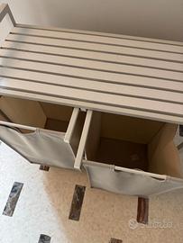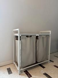 Vendo un cesto portabiancheria con 2 sacchi in tessuto Oxford estraibili, piano d’appoggio: con un piccolo segno dovuto a goccia d’acqua, struttura in metallo, dimensioni 73 x 33 x 72 cm, colore crema e bianco. Ritiro in centro a Como. Per qualsiasi informazione, scrivetemi