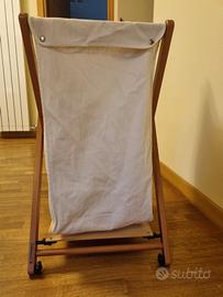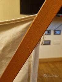 Cesto portabiancheria della Foppapedretti, usato c'è un graffio, le rotelle vanno sostituite e ci sono due macchie nel contenitore in cotone