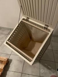 Portabiancheria in legno bianco, con coperchio e sacco interno estraibile e lavabile. Misure: 60x60