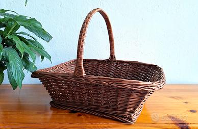 🧺 Disponibili tanti altri modelli di cesti con varie forme e misure 🧺 Aggiungi un tocco di calore e autenticità alla tua casa con questo splendido cesto rettangolare in vimini naturale. Caratterizzato da una struttura solida e un intreccio curato, questo pezzo non è solo un contenitore, ma un vero elemento d'arredo. Il suo colore caldo legno scuro, e il design con manico alto e resistente lo rendono perfetto per diversi utilizzi: 🍎 In cucina: ideale come portafrutta o per presentare il pane in tavola, o per pranzi, eventi speciali. 🌸 Decorazione: splendido come base per composizioni di fiori secchi o per riporre riviste e plaid in soggiorno. 🧺 Tradizione: perfetto per una scampagnata o per la raccolta di erbe aromatiche e funghi. ✨ Stile: si adatta magnificamente ad ambienti rustici, country, boho, shabby chic o provenzali. 🏡 Perfetto per la decorazione della casa come portaoggetti: legna, piante, libri, giocattoli, ecc.. Ideale anche come cesto regalo con prodotti alimentari, cosmetici o altro. ✅ Condizioni ottime 📏 Misure: 40 x 55 cm 📍 Ritiro a mano su Roma e provincia. 🏷️ Prezzo 20 euro. 🔑 Keywords: cesto in vimini, cesto intrecciato in vimini, arredamento rustico, boho style, shabby chic, contenitore naturale, home decor, stile provenzale, cesto con manico, artigianato, vintage, porta oggetti, porta frutta, porta fiori, picnic, organizzazione casa, cesto regalo, vimini intrecciato, accessorio cucina, decorazione interni, cestino, cesto, decorativo, biancheria, oggetti, contenitore, fatto a mano, in legno, legna, taverna, ristorante, trattoria, sala da pranzo, giardino.