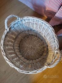 cesto rotondo bianco vimini con manici