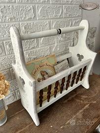 Cesto portaoggetti vintage in legno dipinto e decorato in stile Shabby Chic. Può essere usato come portariviste, porta piante, portaombrelli, porta asciugamani ect.