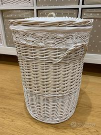 Cesto in vimini Zara Home, colore bianco, misura 42x34.