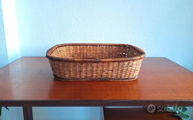 🏡 Aggiungi un tocco di calore naturale alla tua casa con questo splendido cesto artigianale in midollino. Caratterizzato da una forma rettangolare smussata e un intreccio robusto, è un pezzo versatile che unisce estetica e funzionalità. Cesto vintage di grandi dimensioni, realizzato interamente a mano. La struttura è solida e presenta una bellissima colorazione calda naturale, ideale per ambienti in stile rustico, boho o per dare un tocco organico a un interno moderno. Un pezzo intramontabile per chi ama l'arredamento sostenibile e i materiali naturali. Utilizzo perfetto come: - vassoio decorativo per tavoli grandi o pouf. - portafrutta o portapane per la cucina. - organizzatore per biancheria, riviste o per il cucito. - svuotatasche per l'ingresso. - elemento decorativo per contenere riviste e tessili in soggiorno. 🌿 Materiale: Realizzato in midollino (l'anima interna della canna di rattan) naturale intrecciato. Materiale molto apprezzato perché è leggero ma estremamente resistente. Stile: Vintage, Rustico, Scandinavo. ✅ Condizioni: Ottime condizioni vintage, con una splendida sfumatura di colore data dal tempo che ne esalta l'autenticità. 📏 Misure: lungh. 60, largh. 44.5, alt. 13 cm. 📍 Ritiro a mano su Roma e provincia. 🏷️ Prezzo 50 euro. 🔑 Keywords: Cesto vintage, midollino, rattan, vassoio grande, arredamento casa, arredamento rustico, boho chic, boho style, shabby chic, contenitore intrecciato, artigianato legno, home decor, vassoio da portata, portaoggetti, stile naturale, stile rustico, oggetto scenografico, home decor, svuotatasche, vintage, Grande Cesto Vintage in Midollino, Vassoio Artigianale Intrecciato.