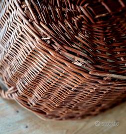 Cesto vintage in vimini, lunghezza 64 cm (da manico a manico), altezza 23 cm, larghezza 41 cm, dettagli in foto, vendo a 15€