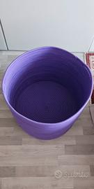 Cestone contenitore "Mandalay" della Unopiù. Con manici, realizzato in fibra sintetica lavorata a mano, intreccio Panama, colore viola, diametro ca 48 cm, altezza 42 cm. Utilizzo sia da interno che outdoor. Condizioni ottime.