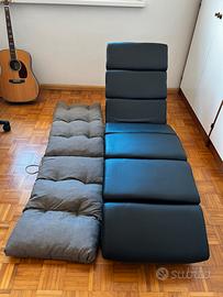 MIADOMODO® Chaise Longue - 154x51x73 cm, Ergonomica, in Similpelle, Imbottita, con 7 Cuscini di Appoggio, Nero - Lettino Relax, Poltrona Lounge, da Soggiorno, Camera da Letto