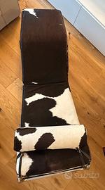 Chaise longue poltrona con tubolare in acciaio e rivestimento cavallino muccato. Con cuscino.