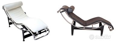 Nota bene: prima di effettuare l'ordine, chiedere la disponibilità del prodotto nella finitura e colore desiderato. La chaise longue LC4 si basa su un progetto originale di Le Corbusier e ha una struttura tubolare in acciaio inox lucidato a specchio. La base è realizzata in lamiera e tubi d'acciaio laccati con vernice nera opaca. Il materasso imbottito in schiuma è rivestito in cuoio . Il poggiatesta è in schiuma rivestita in pelle. Base con cinghie piatte come l'originale. Merce nuova made in Italy con garanzia fatturabile. Dimensioni: 59 x 160 x 85 cm.