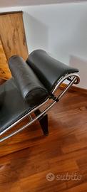 chaise longue in vera pelle, colore nero. telaio cromato. replica LC4 le Courbusier. molto bella.