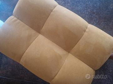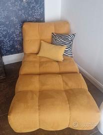 Chaise longue Dondi Salotti. Modulabile. Da utilizzare on o senza pouf. Giallo Ocra. Tessuto Alcantara lavabile. Misure della poltrona. Altezza totale 80cm. Misure seduta: profondità della seduta 60cm, lunghezza 84cm, altezza 34cm.