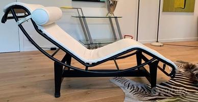 Poltrona Basculante di Le Corbusier. Serie Grandi Maestri del XX secolo. Chaise Longue LC4 1401 produzione MDF Italia. Struttura in tubolare di acciaio nera a polveri epossiliche. La poltrona si trova in uno STATO Estetico e di Forma ECCELLENTE . Schienale di seduta lombare dotato di materassino imbottito in poliuretano espanso, rivestito in morbida pelle in colore bianco. Nessun segno particolarmente evidente. Costo di spedizione su >Roma e provincia 200 euro.