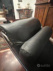 Vendo elegante Chaise longue in pelle color canna da fucile. La base è nera opaca mentre la struttura e’ in acciaio lucido. E’ usata poco ma presenta qualche segno nell’acciaio. La pelle è ben conservata; presenta pochi segni di usura.