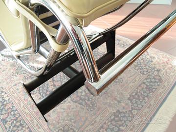 CHAISE LONGUE LE CORBUSIER Chaise longue, disegnata da Le Corbusier, Pierre Jeanneret e Charlotte Perriand, con telaio in acciaio cromato lucido, base in acciaio verniciato nero opaco e rivestimento in pelle color deserto.