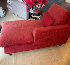 Chaise longue Maistri originale, rivestimento in cotone di velluto a costine color rosso corallo.