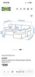 Vendo chaise longue modello extorp bianca uscita di produzione sostituita con il modello Uppland. Larghezza circa 63 cm con bracciolo 90 circa. Profonda 163, completa di fodera bianca in cotone sfoderabile.