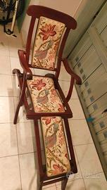 poltrona pieghevole imbottita in legno con motivo floreale d'epoca risalente agli inizi del 1900