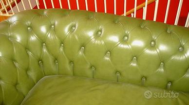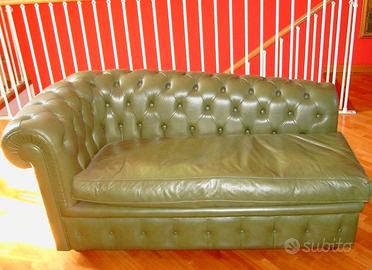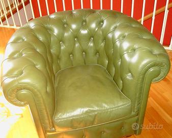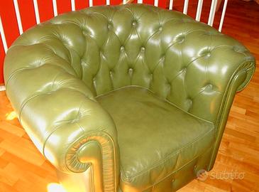 CHAISE LONGUE SINISTRA E POLTRONA TIPO CHESTER IN VERA PELLE VINTAGE Vendo come da fotografie indicative: n. 1 chaise longue sinistra a due posti tipo Chester n. 1 poltrona tipo Chester Entrambi gli arredi HAND MADE sono in vera pelle colore Verde Inglese e, benché usati, sono in buone condizioni. Il modello Chester rimanda a quello classico dei divani e delle poltrone dell’Inghilterra edoardiana che arredavano i club e le country house inglesi. Ogni arredo si distingue per il plissé dei braccioli che chiudono elegantemente la ricca lavorazione a capitonnée del manto eseguito a mano. Dimensioni indicative della chaise longue (L) 150 x (P) 80 x (H) massima 74 cm al bracciolo – minima 64 cm (P) seduta 55 cm Dimensioni indicative della poltrona (L) 90 x (P) 70 x (H) 74 cm (P) seduta 50 cm VENDITA CON RITIRO DIRETTO DA PARTE DELL'ACQUIRENTE. Sono arredi straordinari che possono fare la differenza per valorizzare qualunque ambiente e ricreare il fascino del passato. LEGGERE TUTTO CON ATTENZIONE. RESTITUZIONE NON ACCETTATA. Questa è un’inserzione di compravendita tra privati esule da qualsiasi garanzia, a parte quanto scritto a proposito dello stato degli arredi. Non mi assumo quindi nessuna responsabilità riguardo all'utilizzo sbagliato dei medesimi rispetto all'uso consentito. Tanto meno per ritardi, danni o qualsivoglia problema occorso durante il ritiro.