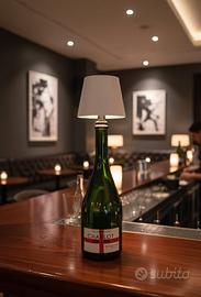Lampada artigianale realizzata con una bottiglia vuota di Champagne Charlot con 3 intensità di luce. Incluso cavo per ricaricare e portachiavi-tappo. Prezzo finale