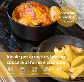 FUNZIONE 2 IN 1 - Con noi si ottiene più di una semplice pentola con coperchio, perché questo coperchio in ghisa può essere utilizzato anche come padella.