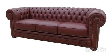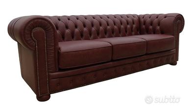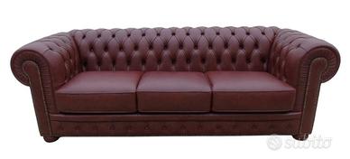 Chester 3 posti in vera pelle vintage bordeaux