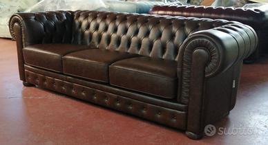 Chester 3 posti in vera pelle vintage tabacco
