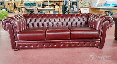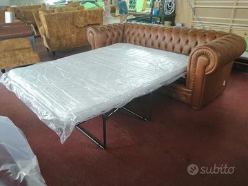 Divano 3 posti LETTO Chesterfield mis.228x95 h.75 in pelle