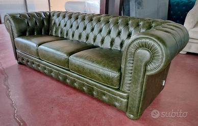 Chester divano 3 posti in vera pelle vintage verde