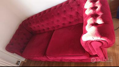 Vendo elegante divano Chesterfield a 2 posti in tessuto bordeaux, causa trasloco.