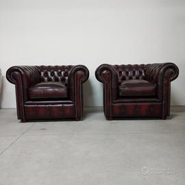 Poltrone e divani chesterfield ( chester ) inglesi originali nuovi e vintage importati direttamente dall' Inghilterra. Chesterfiled iconici dal fascino British realizzati artigianalmente in pelle bovina di pieno fiore tamponata e stonalizzata a mano. I nostri punti vendita si trovano a Sora FR 03039 in Via Sferracavallo 23 e in Via Salita dei Pini 6. Si riceve su appuntamento dato che spesso siamo fuori sede. Questo è il listino prezzi dei chesterfield nuovi : poggiapiedi € 350,00 - poltrona singola club o Queen Anne € 1200,00 - divano 2 posti € 2000,00 - divano 3 posti € 2100,00.